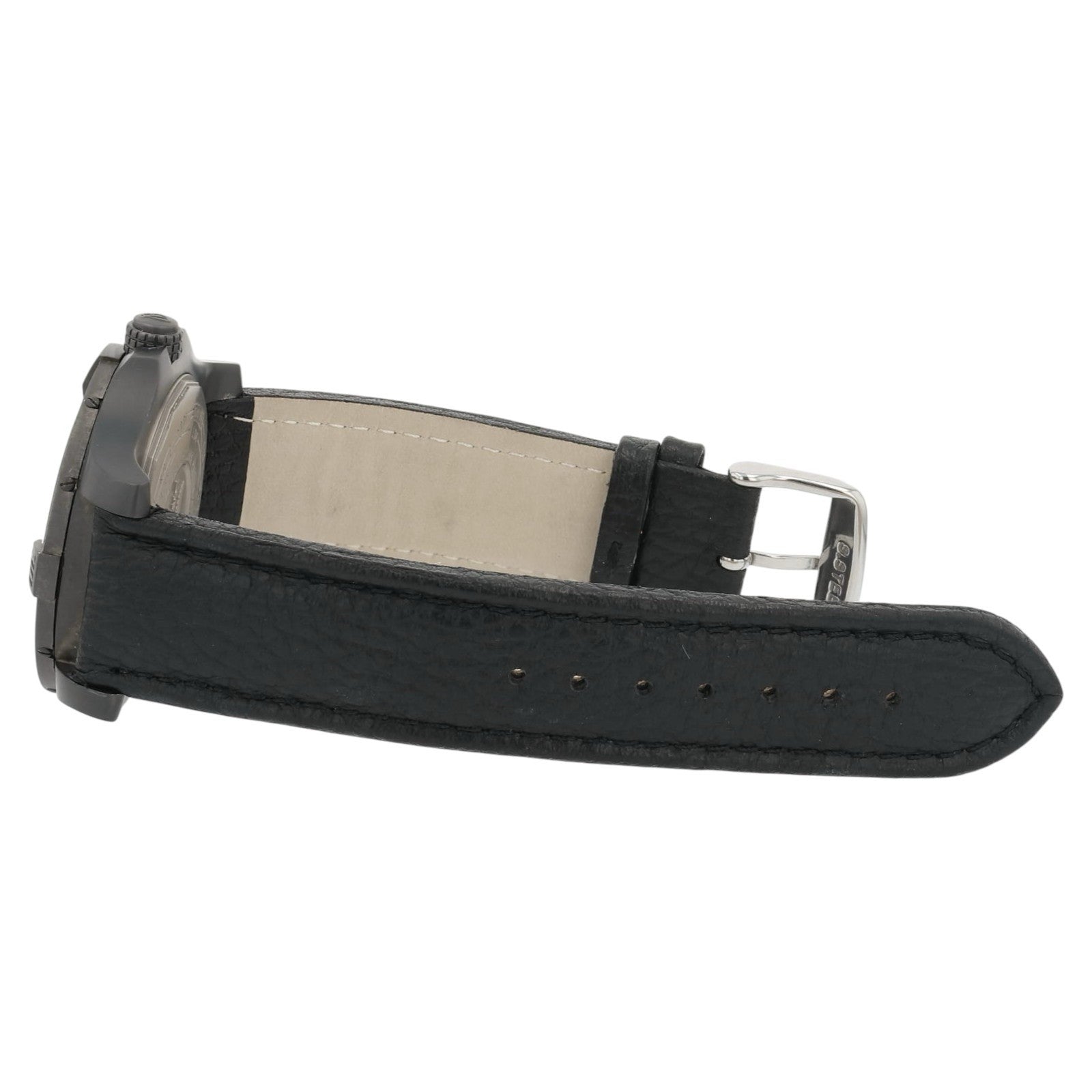 Condition: The watch is in pre-owned condition. The crystal does have some signs of wear. There are a few minor scratches on the case but nothing too significant. The leather strap is in good condition with lots of life left. Overall the watch is in nice shape. NOTE: The bezel does not click.