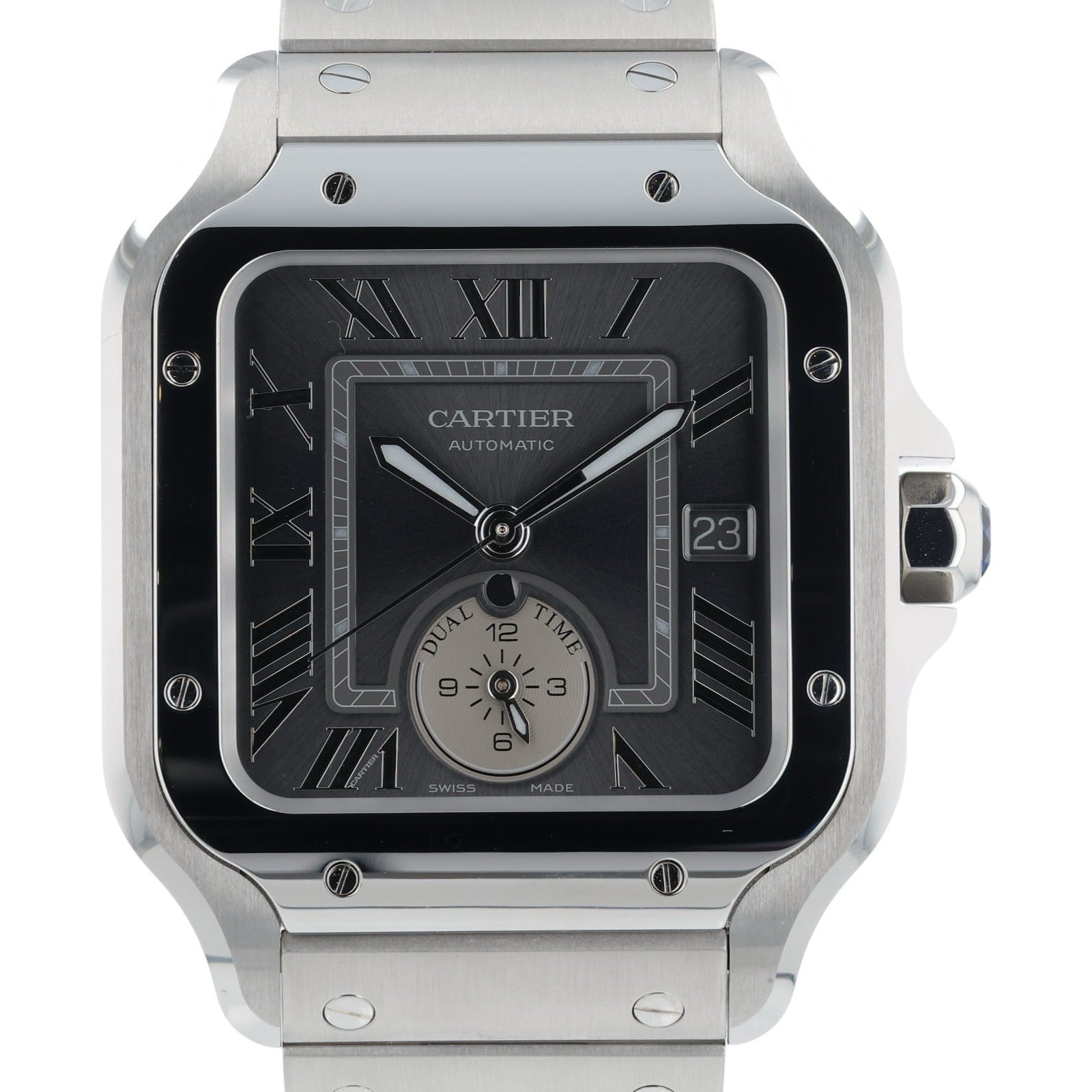 NEW Cartier Santos Dual Time Gray Dial 40mm Automatic Men's Watch WSSA0076