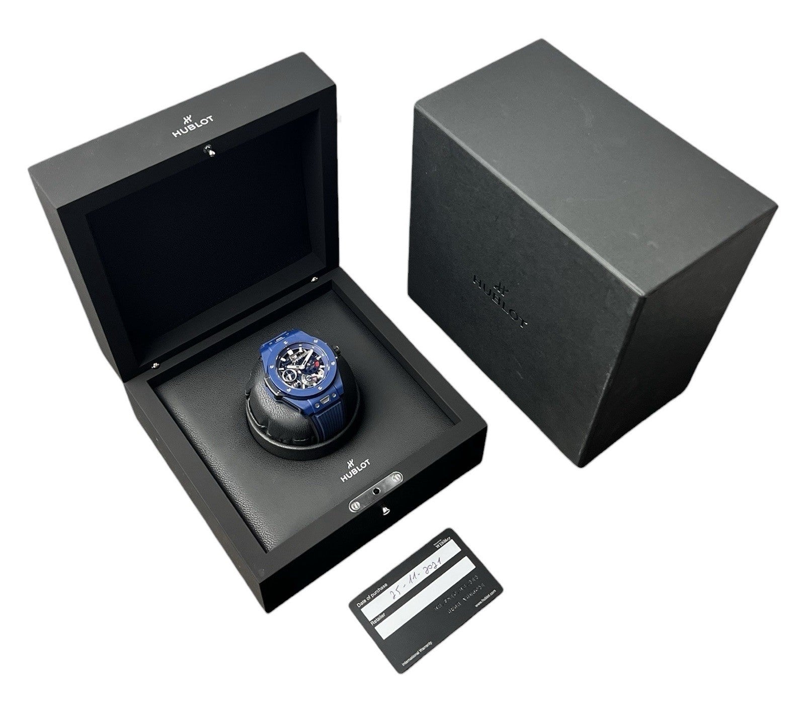 Includes: Watch, double box, and international warranty card dated 2021.