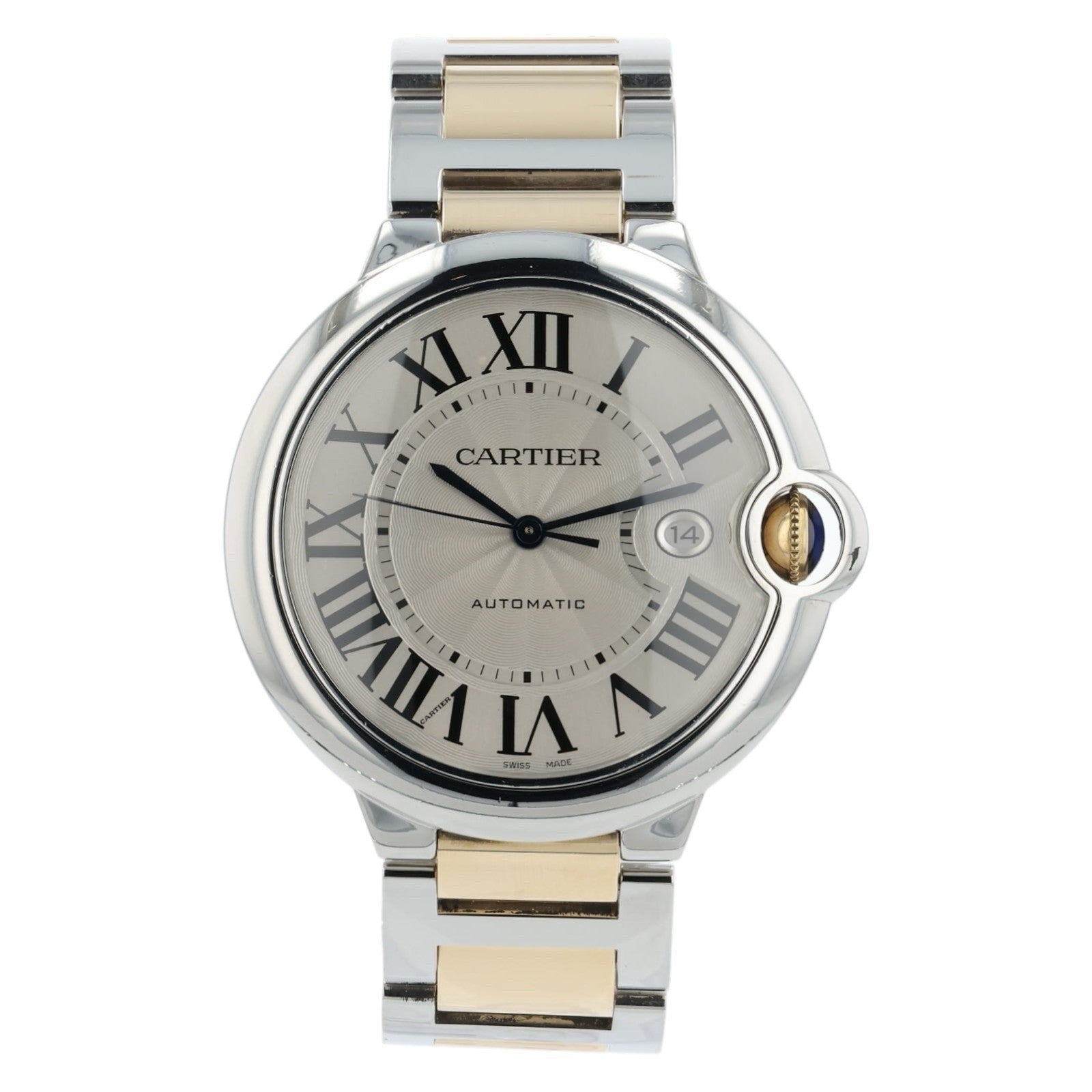 Cartier Ballon Bleu Silver Dial Gold & Steel 42mm Automatic Mens Watch W69009Z3