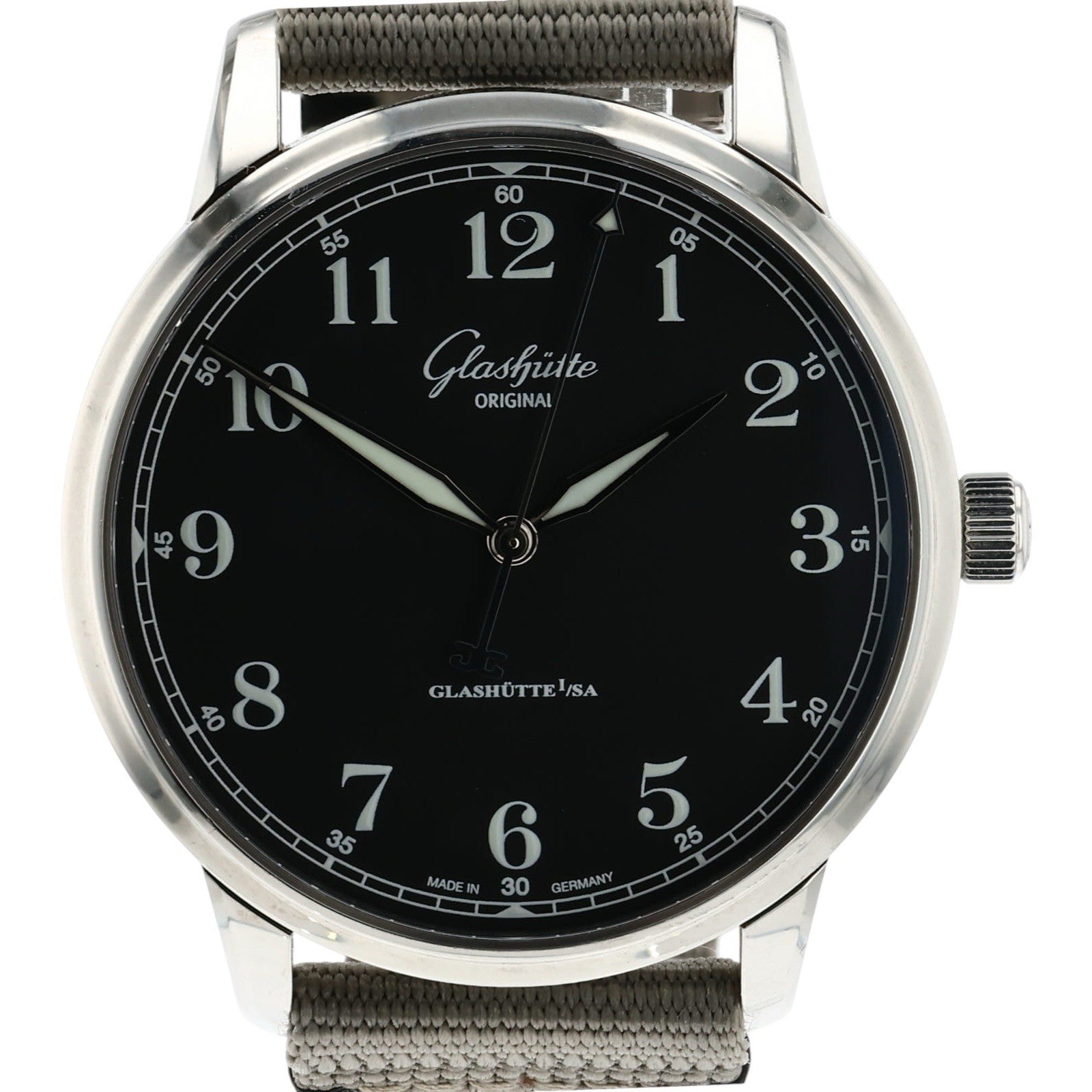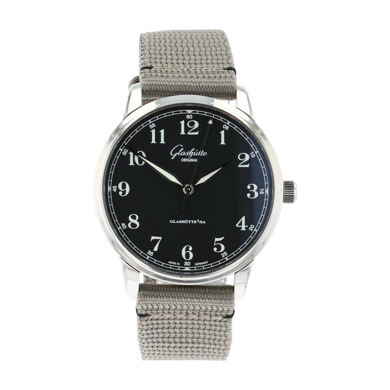 Condition: The watch is in pre-owned condition. There are minor scratches throughout the case but nothing worth noting. The canvas strap is in good condition with lots of life left. Overall the watch is in nice shape.