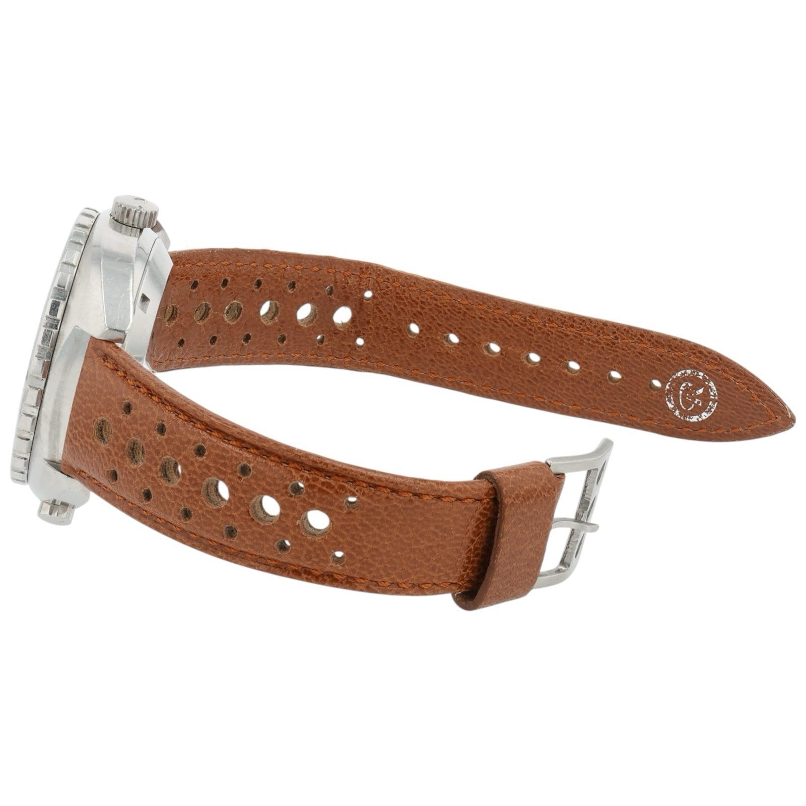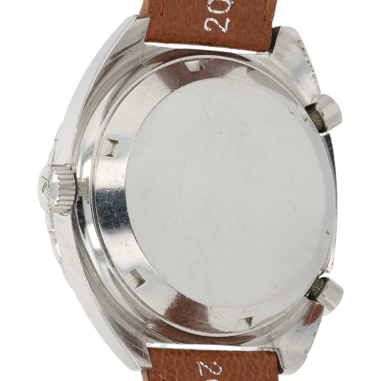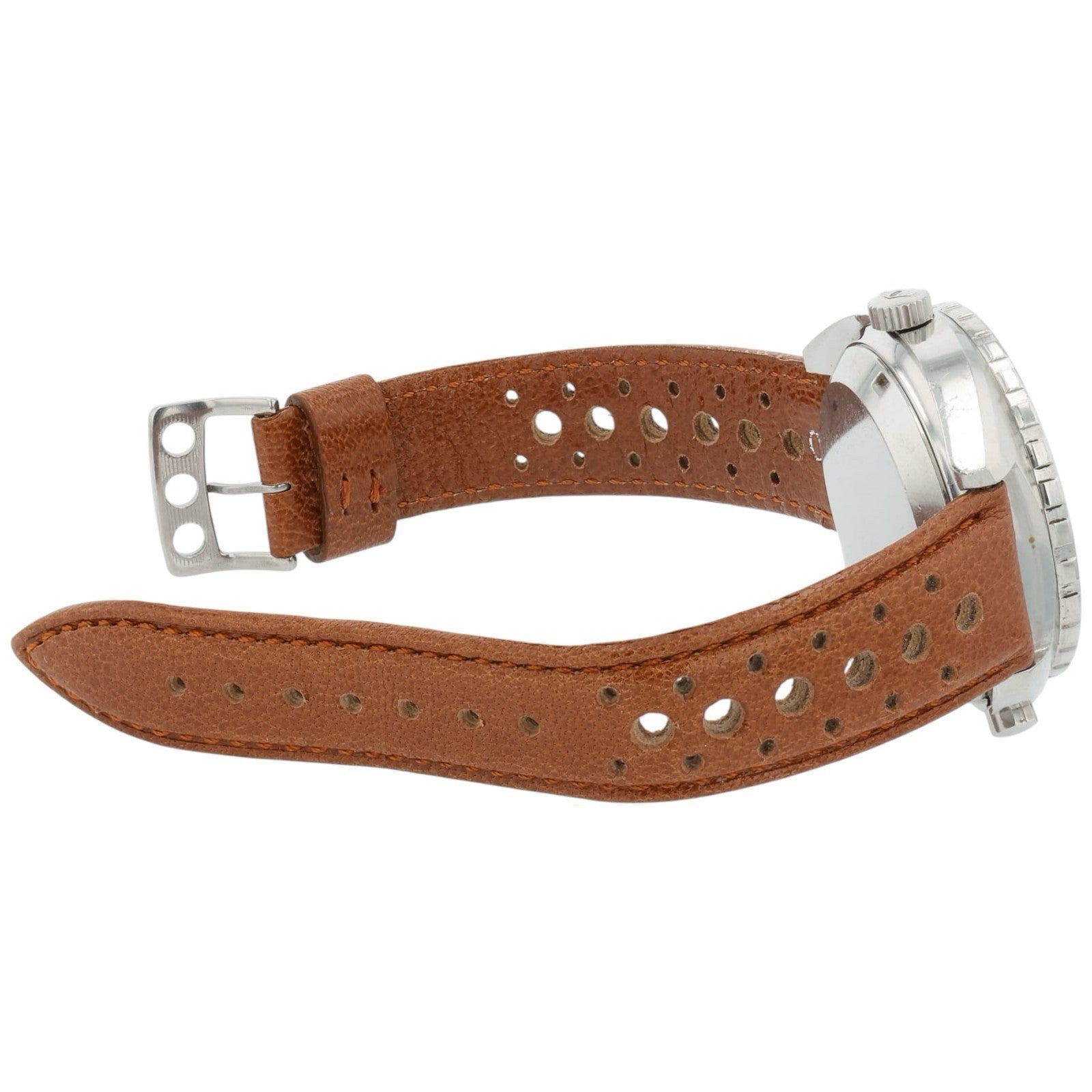 Condition: The watch is in pre-owned condition. Dial, indices, and hour markers have wear to them but nothing too significant. There are scratches throughout the crystal, case and bezel as seen in the pictures. The leather strap is in good condition with lots of life left. Overall the watch is in nice shape.