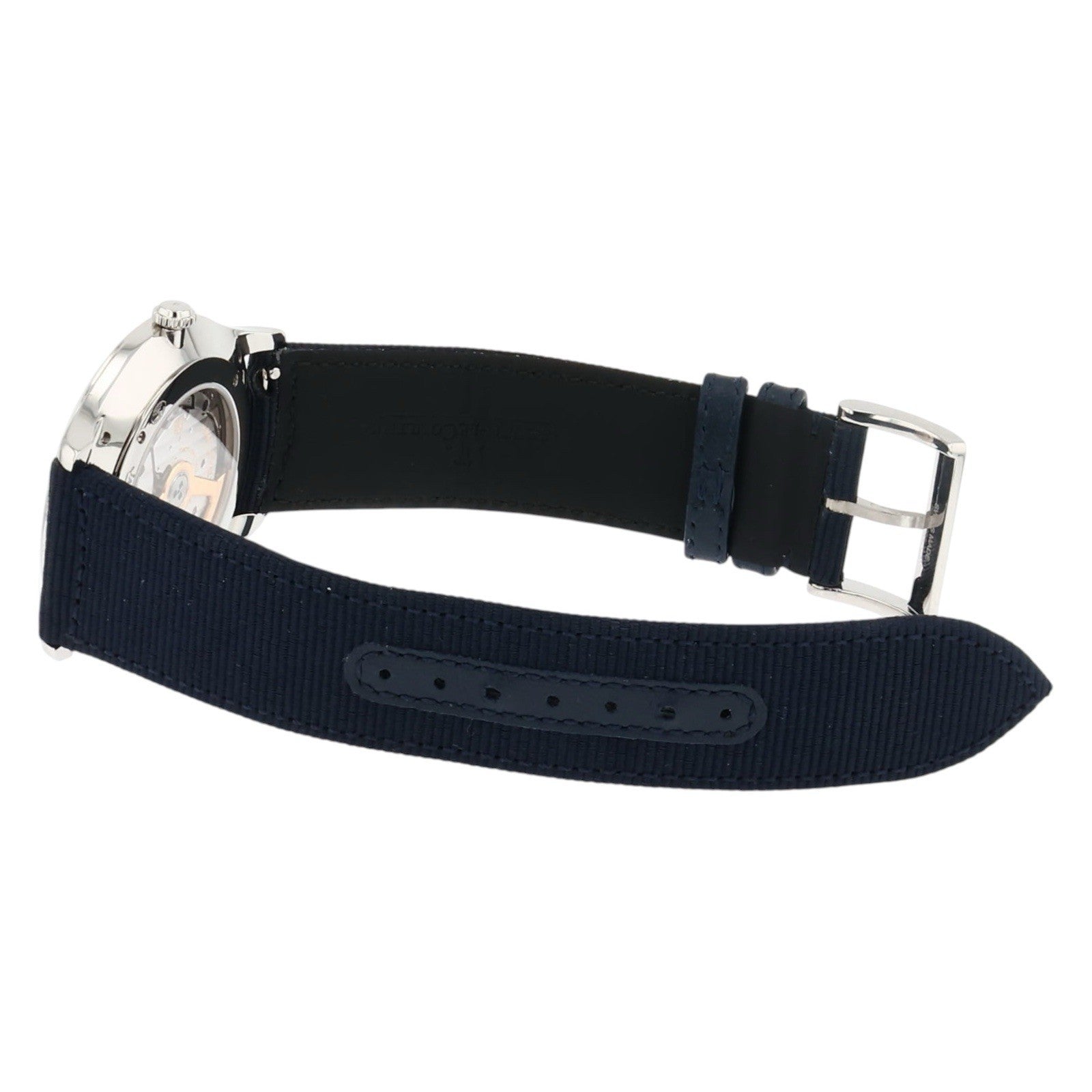 Condition: The watch is in pre-owned condition. There are minor hairline wear scratches throughout the case and the clasp. There is a shallow dent on the inner portion of the bezel, near the crown. The strap's holes are stretched due to the buckle closure, but there is still plenty of life left in the strap. The watch overall is in great pre-owned condition.