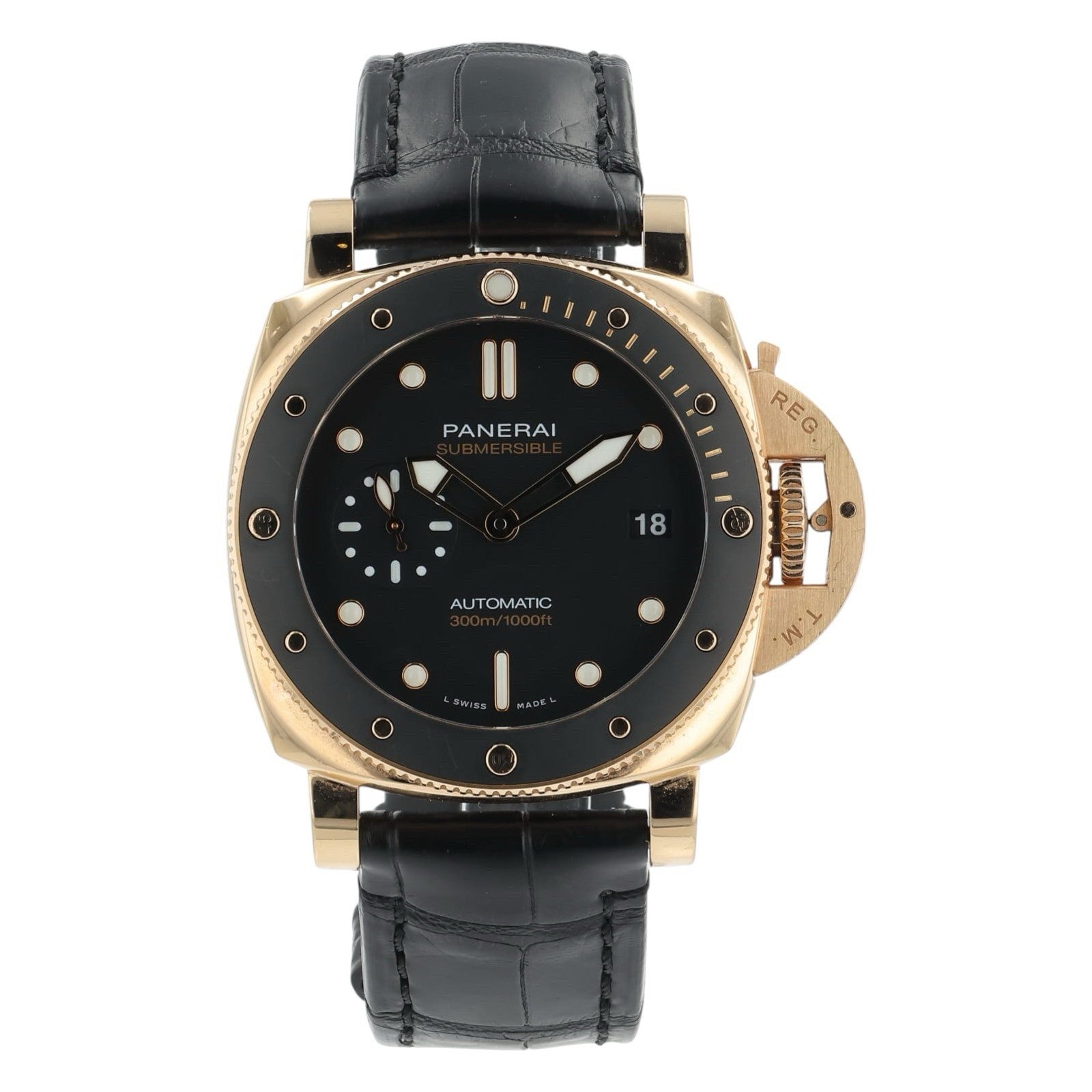 Panerai Submersible 18k Rose Gold Black Dial 42mm Automatic Mens Watch PAM01164