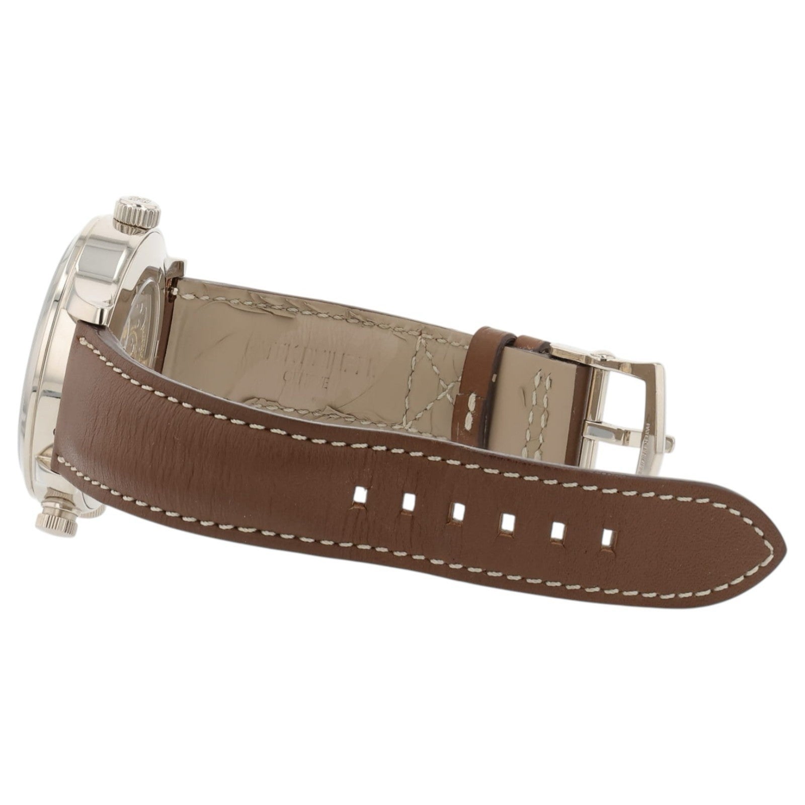 Condition: The watch is in pre-owned condition. There are general wear scratches present on the case and clasp, the scratches are not that deep and could be removed with a polish at the buyer’s request. The straps lining has begun to wrinkle and peel off.