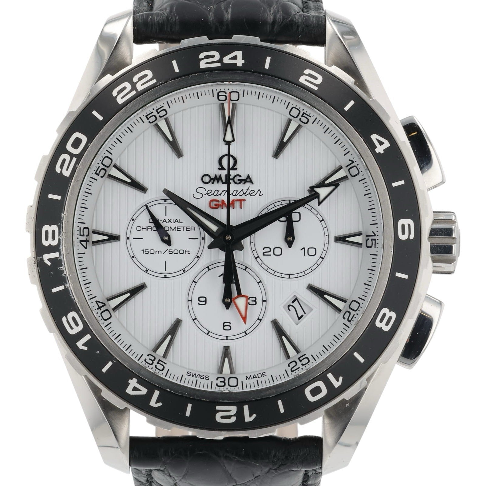 Condition: The watch is in pre-owned condition. There are a few minor scratches on the case but nothing too significant. The leather strap is in good condition with lots of life left. Overall the watch is in nice shape.