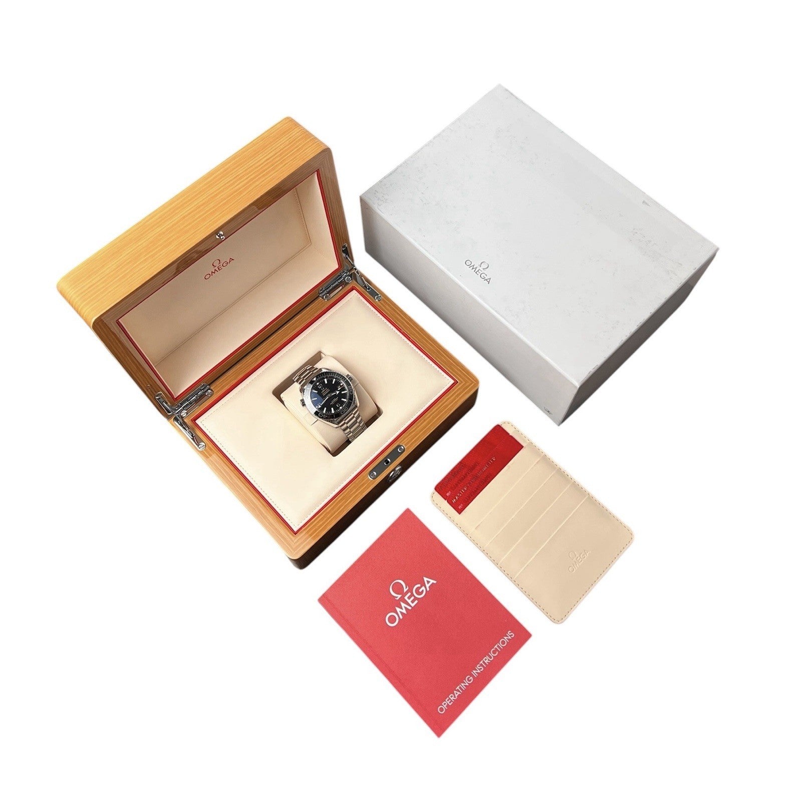 Includes: Watch, double box, booklet, pictogram card, and chronometer card.