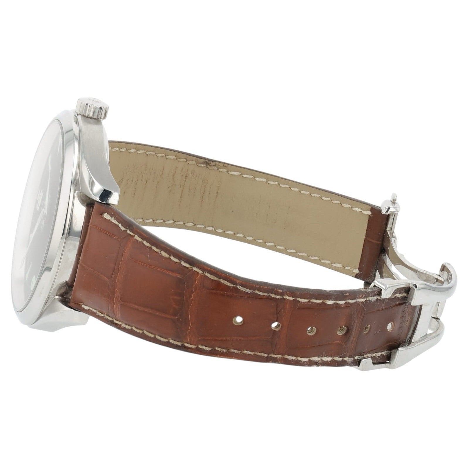 Condition: The watch is in pre-owned condition. The crystal does show some light signs of wear. There are a few light scratches on the case but nothing too significant. The leather strap is in good condition with lots of life left. Overall the watch is in nice shape.
