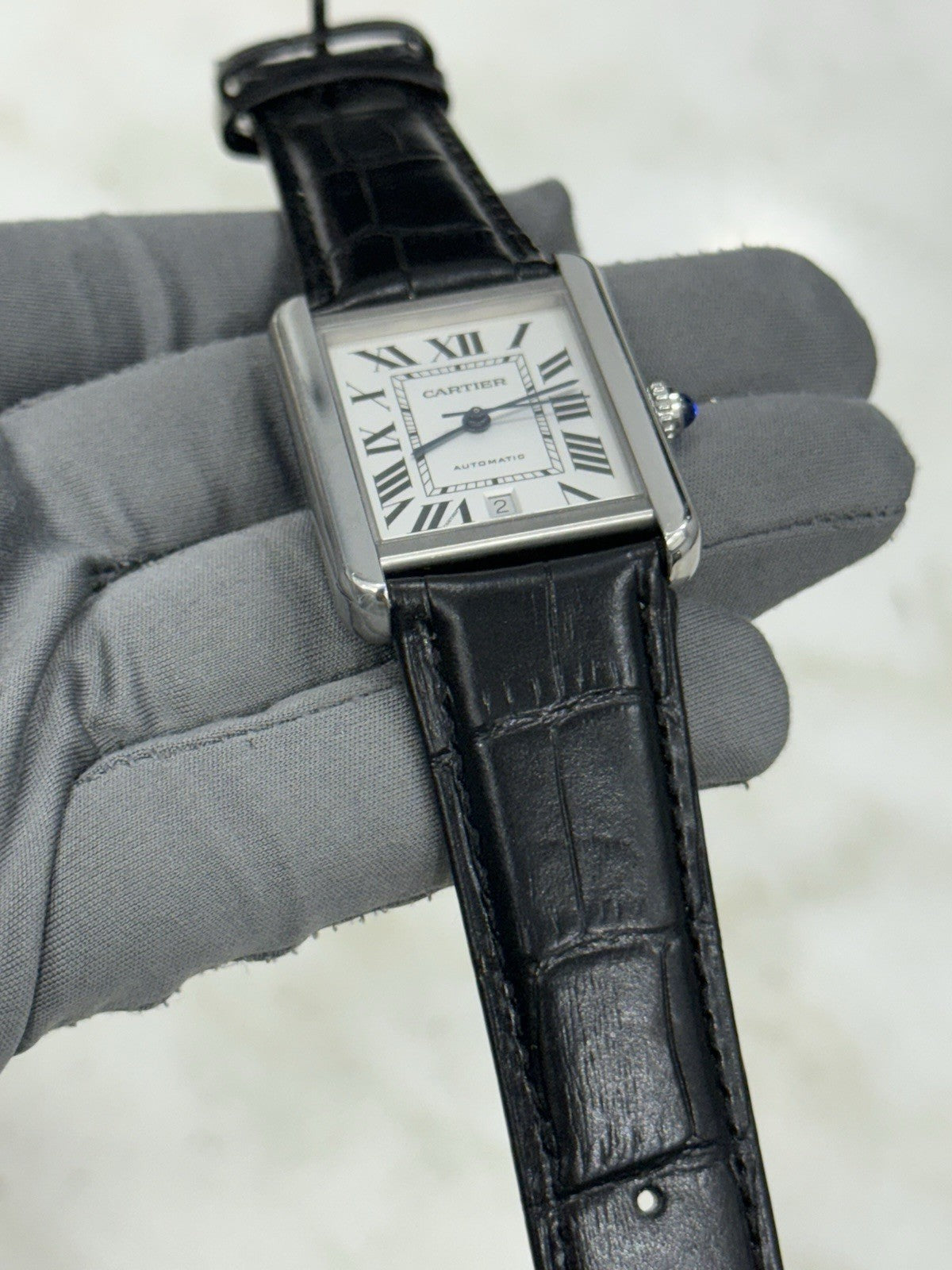 The Cartier Tank Solo XL (Ref. W5200028) brings that classic Cartier design in a slightly larger case, perfect for those who like a little more wrist presence. The 31mm case is paired with an automatic movement and a silver dial that keeps things clean and timeless. This piece fits up to a 7.75-inch wrist and comes on a non-OEM strap and clasp. It’s in nice shape overall with minor signs of wear. Note: the watch does not manually wind and the date changes late, so it’s priced accordingly for someone comfortable with those quirks.