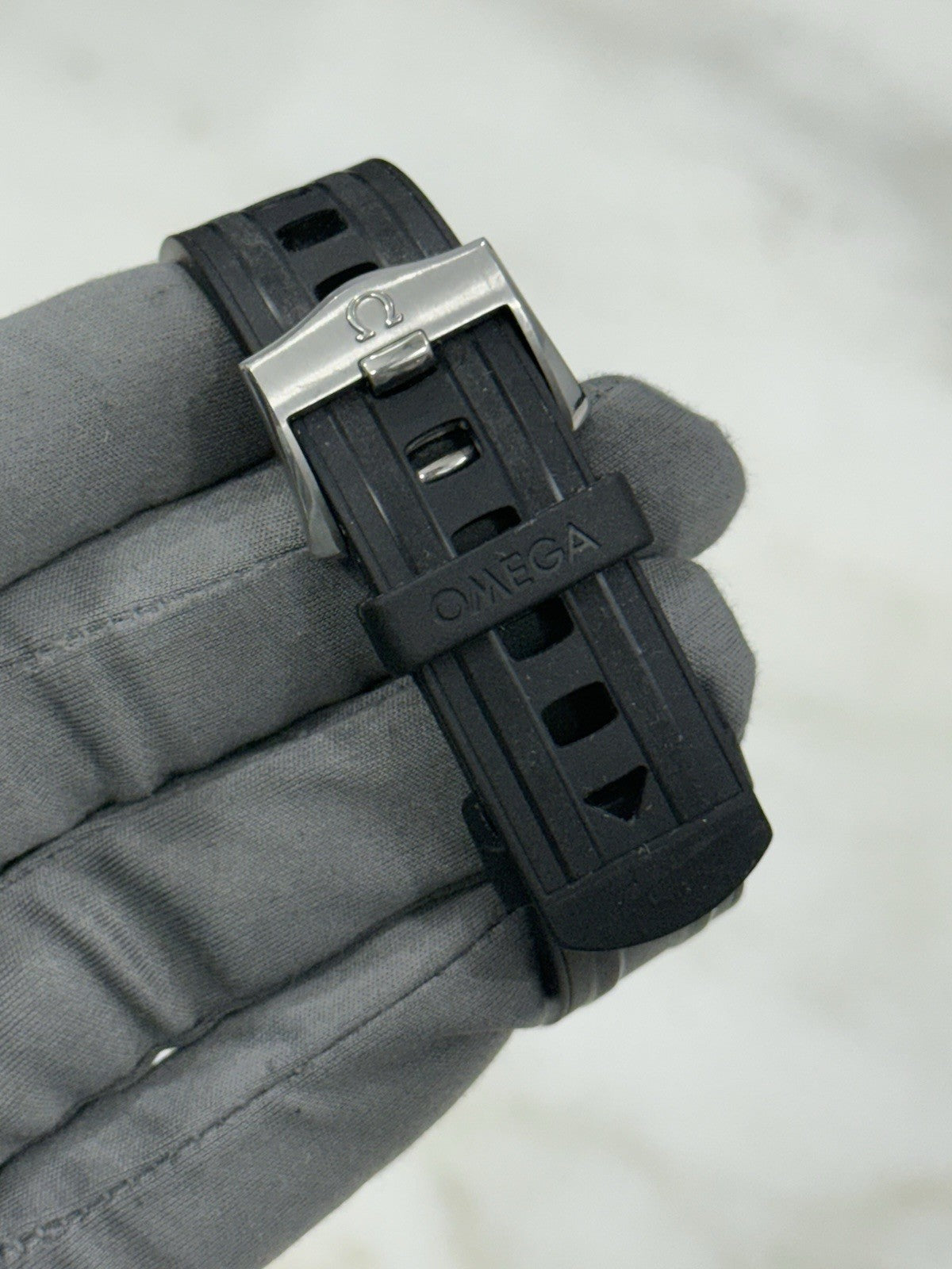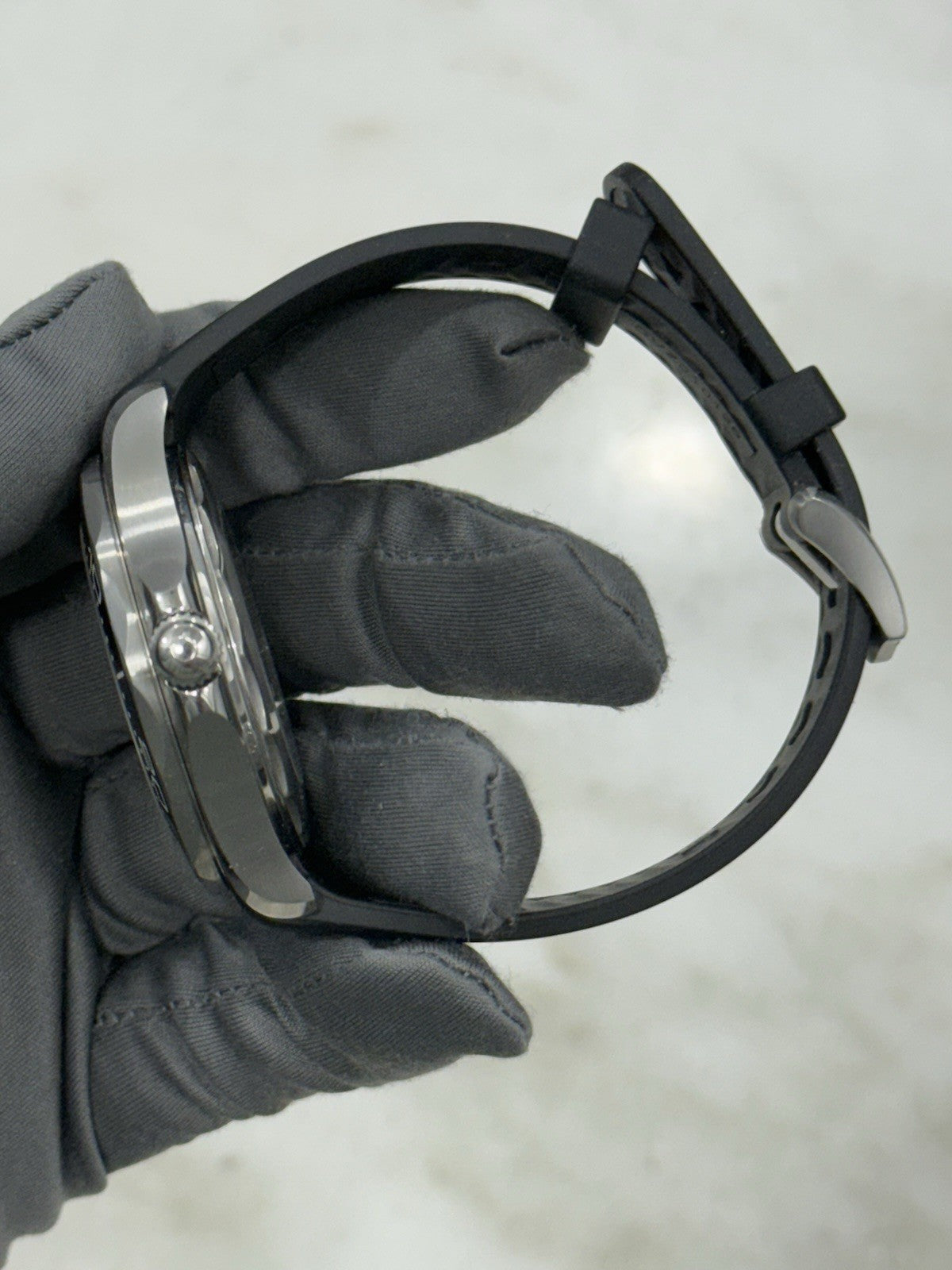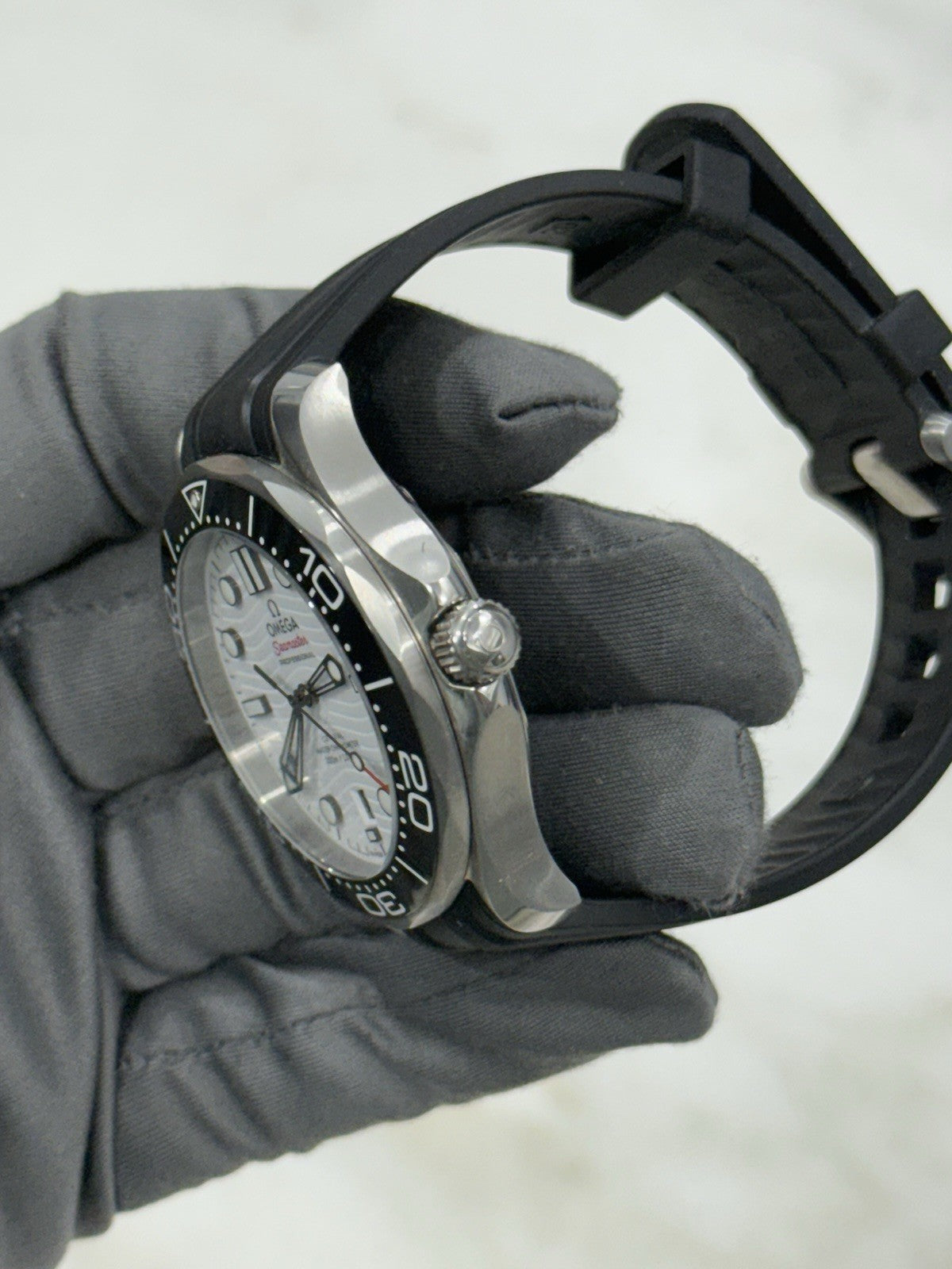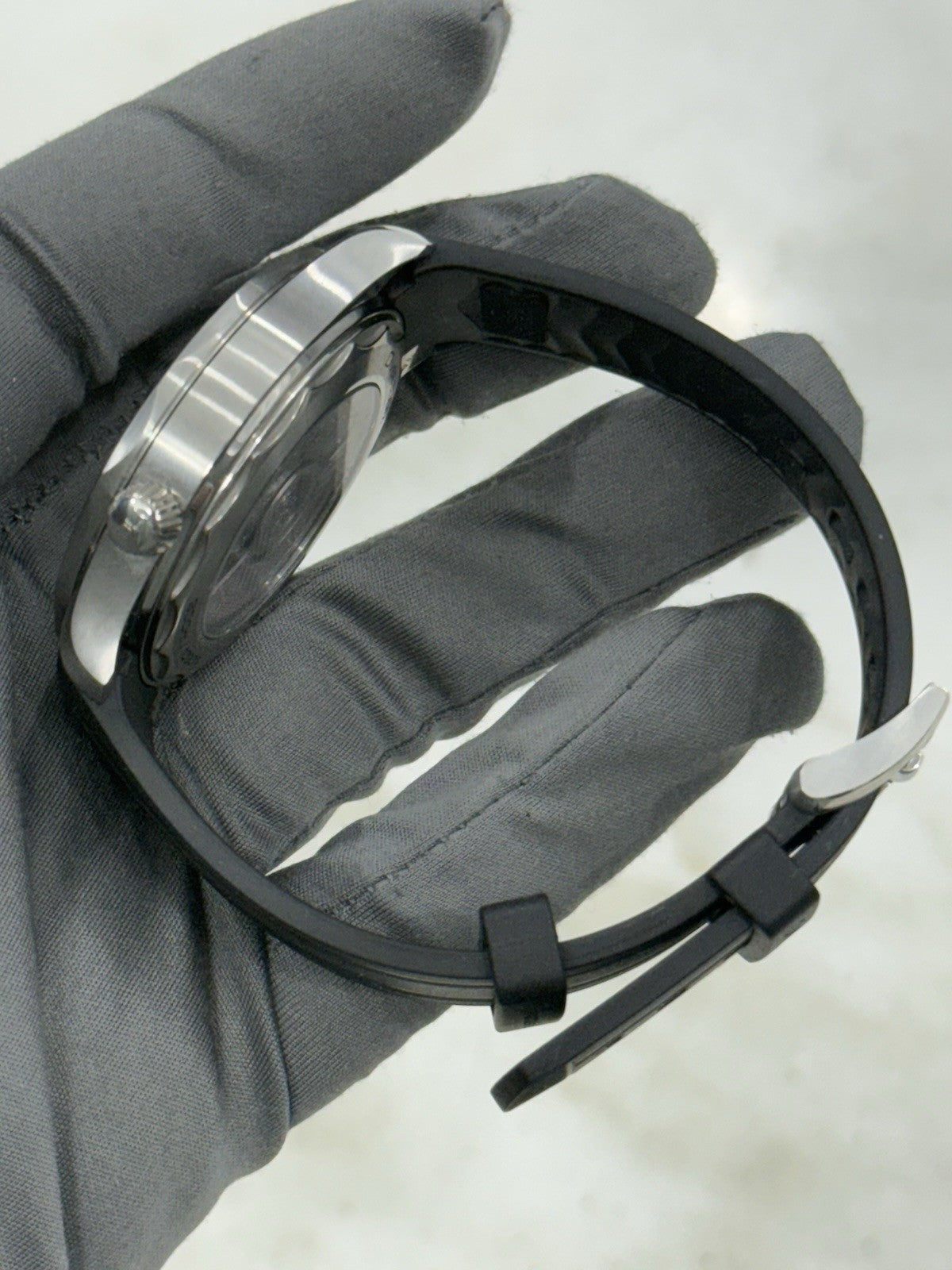 Condition: The watch is in pre-owned condition. There are some scratches and dings throughout the case but nothing too significant. The rubber strap is in good condition with lots of life left. Overall, the watch is in nice shape but a polish may be desired to improve the appearance.