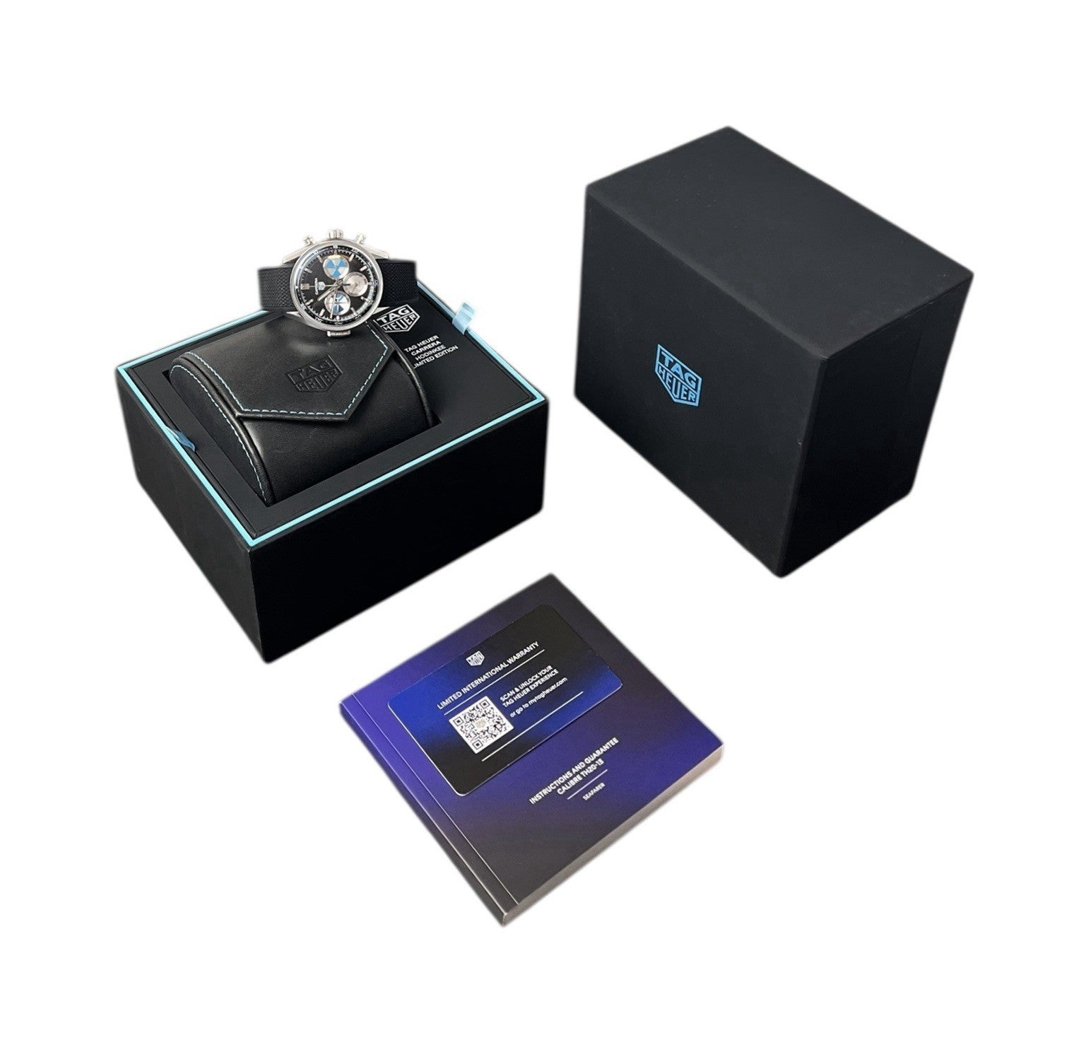 Includes: Watch, box, travel case, booklet, and international warranty card with open date.