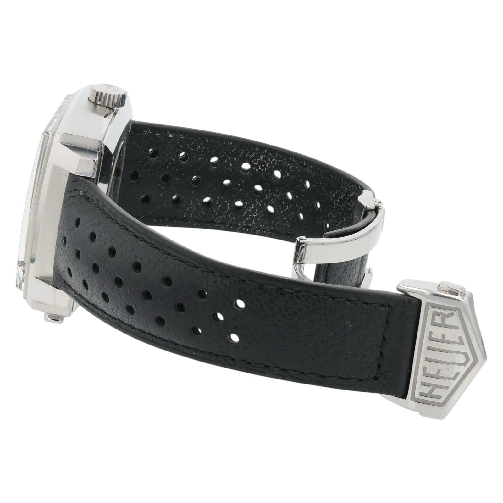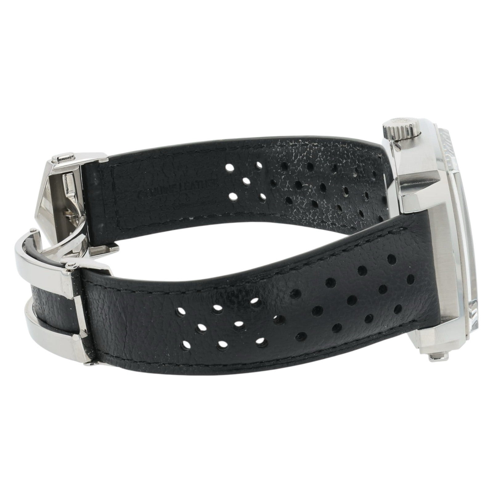 Condition: The watch is in pre-owned condition. The watch shows general wear and tear, there are light scuffs on the crystal, case, and clasp. The strap also shows general signs of wear, with slight staining on the interior. Overall, the watch is in good pre-owned condition and has tons of life left.